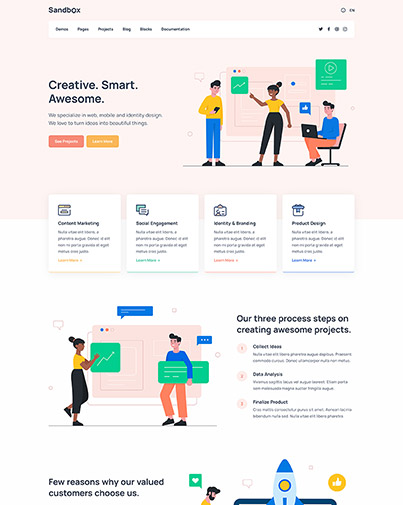 You can create your website in minutes with the help of countless amazing features of Sandbox.