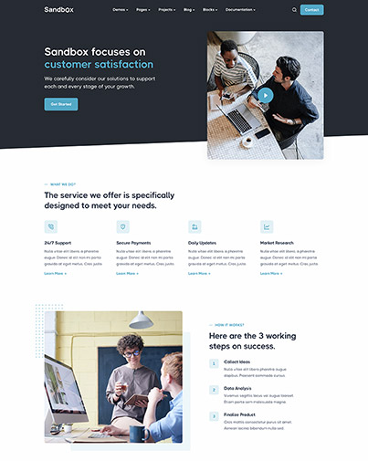 Build your website using the powerful features of Sandbox